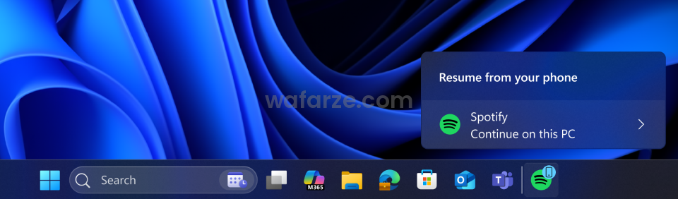 Özelliği test etmek isteyen kullanıcılar, android telefonları ile PC’lerini “Link to Windows” uygulaması aracılığıyla bağladıklarında, telefonlarında Spotify’da çalmakta olan bir müzik, Windows görev çubuğunda “Resume from your phone” (Telefonunuzda devam edin) ibaresiyle bir bildirim olarak görünüyor.